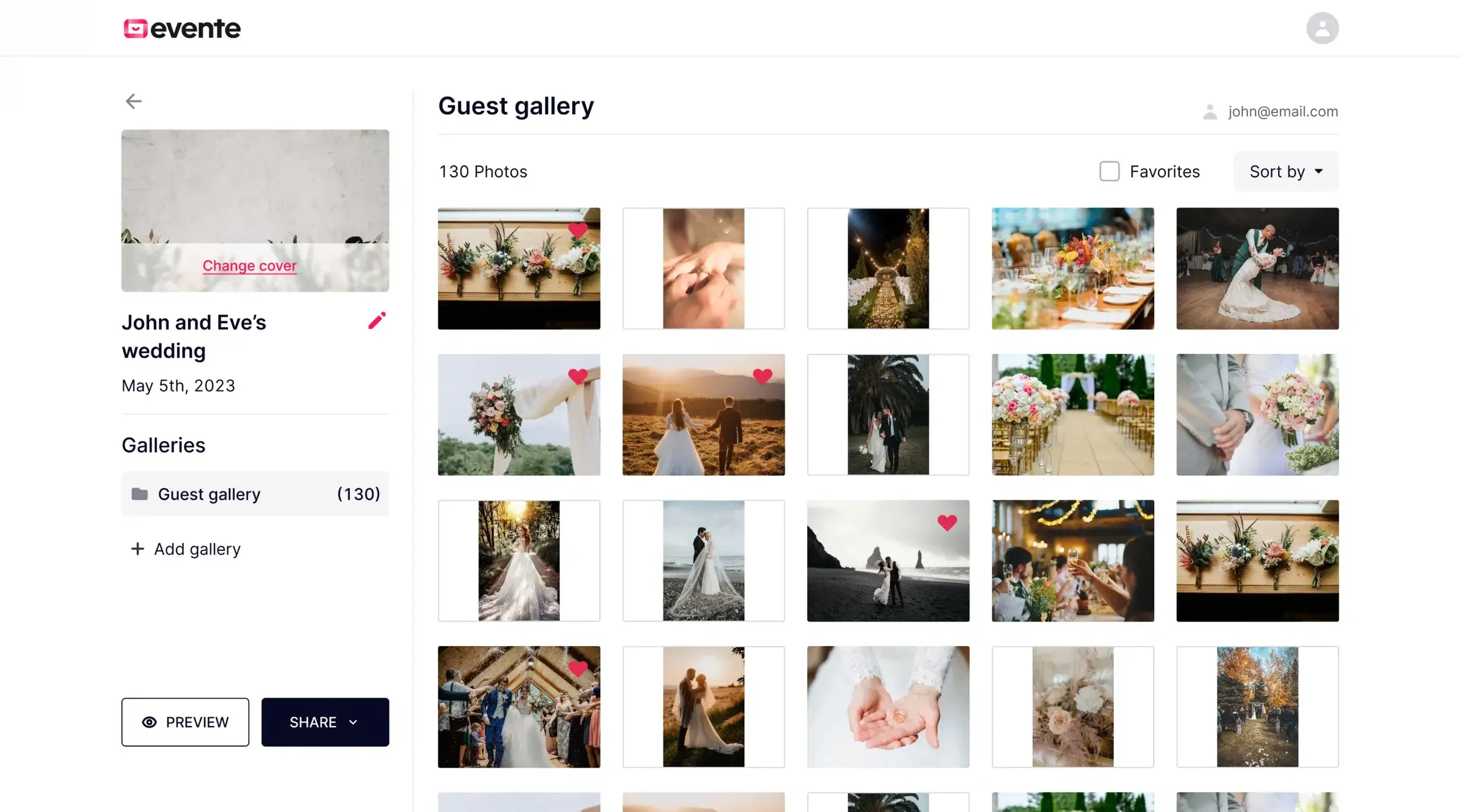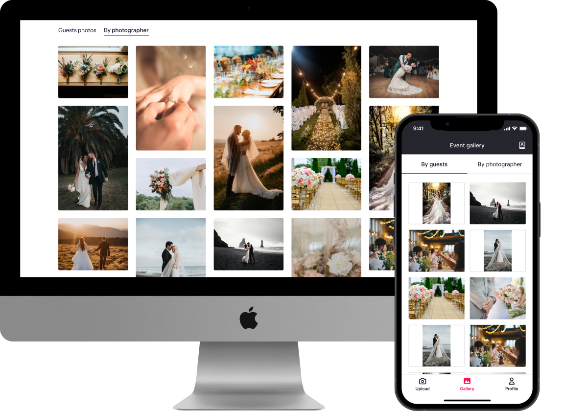 Using a simple QR code Evente App effortlessly gathers photographs taken by wedding guests and event attendees adding them to a special online guests gallery that runs alongside your own professional gallery. This ensures your images get in front of everyone attending and that no moment goes undocumented.